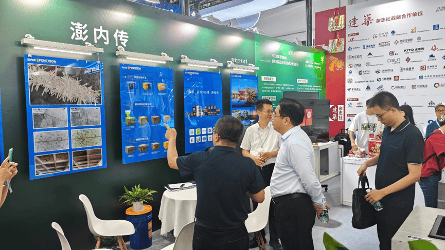 北京澎內(nèi)傳公司展出了全球領(lǐng)先的混凝土滲透結(jié)晶自愈合技術(shù)以及系統(tǒng)產(chǎn)品,展板上生動形象的展現(xiàn)出滲透結(jié)晶的技術(shù)原理、電鏡下的結(jié)晶形貌和實效工程照片等;實物水池模型與試塊直觀地看到結(jié)晶自愈合后的功效。澎內(nèi)傳先進的滲透結(jié)晶科技不僅能從根本上解決混凝土結(jié)構(gòu)的滲漏水頑疾,還能提高混凝土整體的耐久性,延長結(jié)構(gòu)的使用壽命60年。產(chǎn)品低碳環(huán)保,為我國造就高質(zhì)量建筑和可持續(xù)發(fā)展的目標(biāo)提供堅實的技術(shù)基礎(chǔ)和科學(xué)的安全保障,更好的滿足人們對好房子的需求。